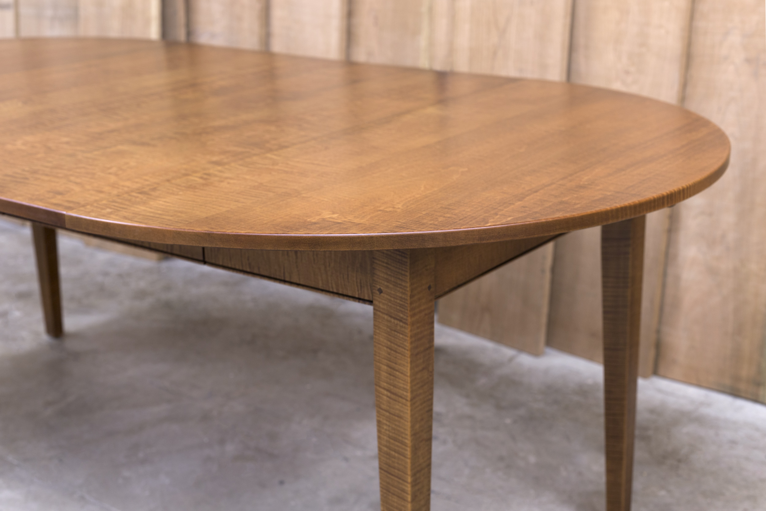 Round Extension Table built of Tiger Maple wood in our Honey finish