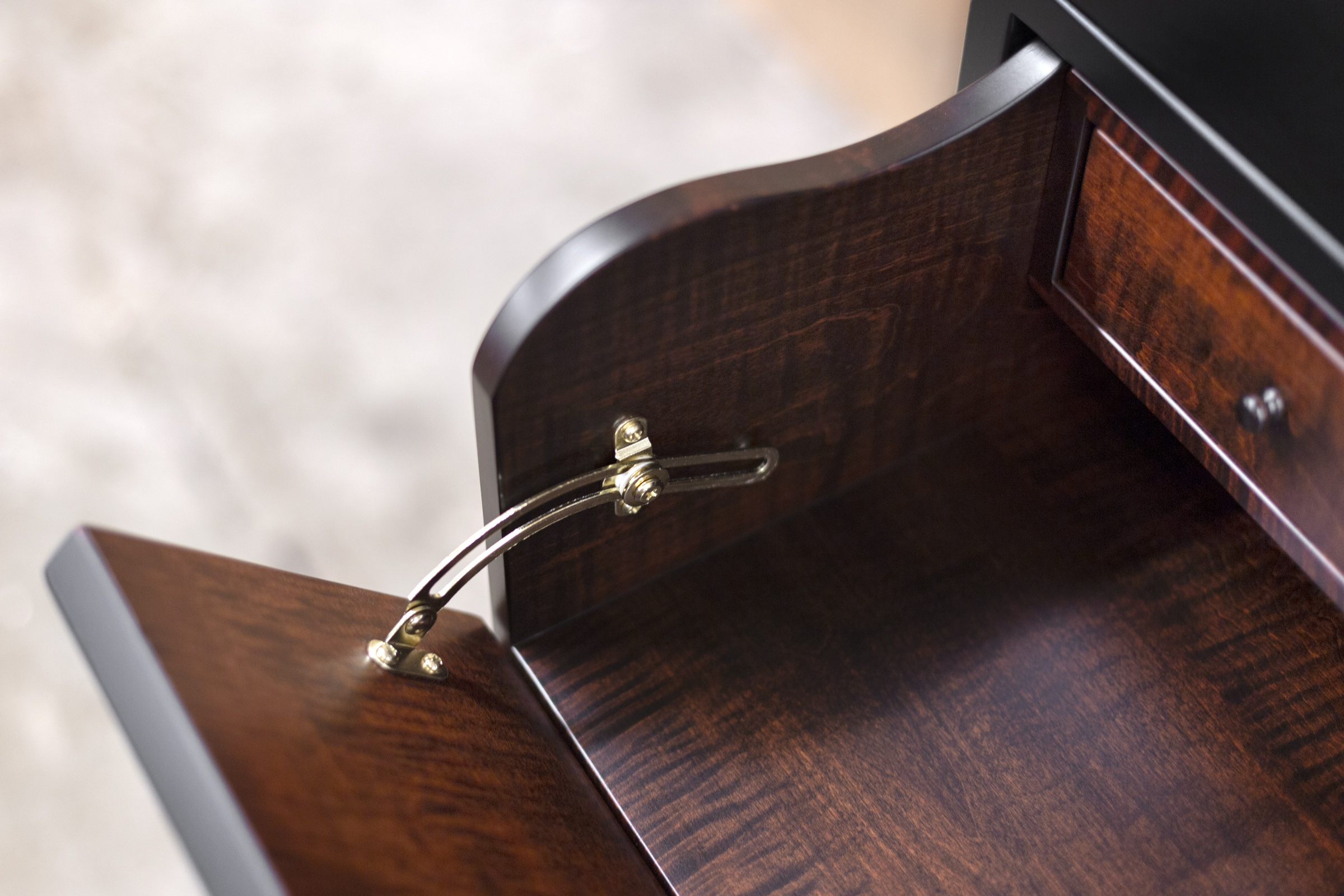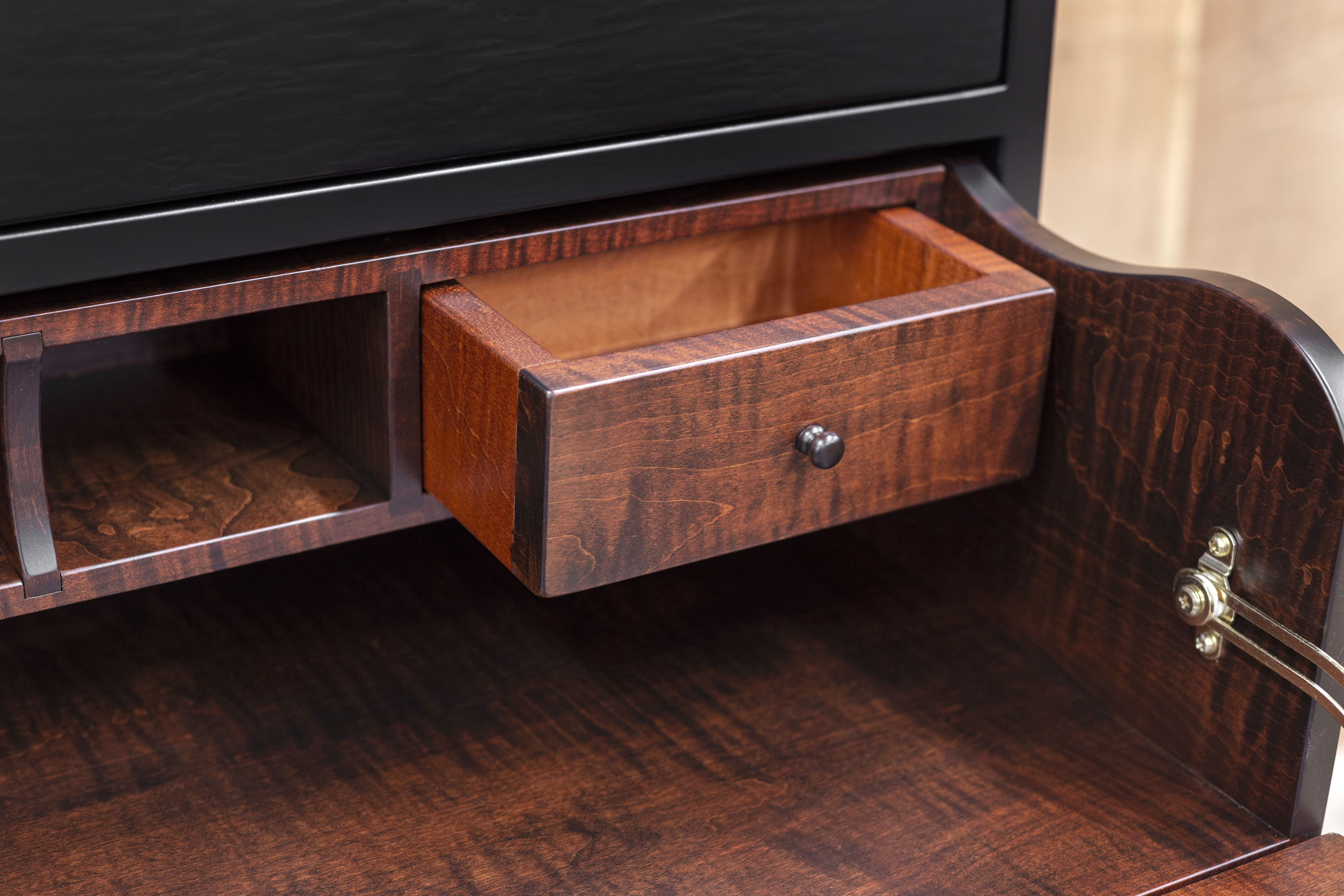 Dresser Desk Interior in Fireside on Tiger Maple wood