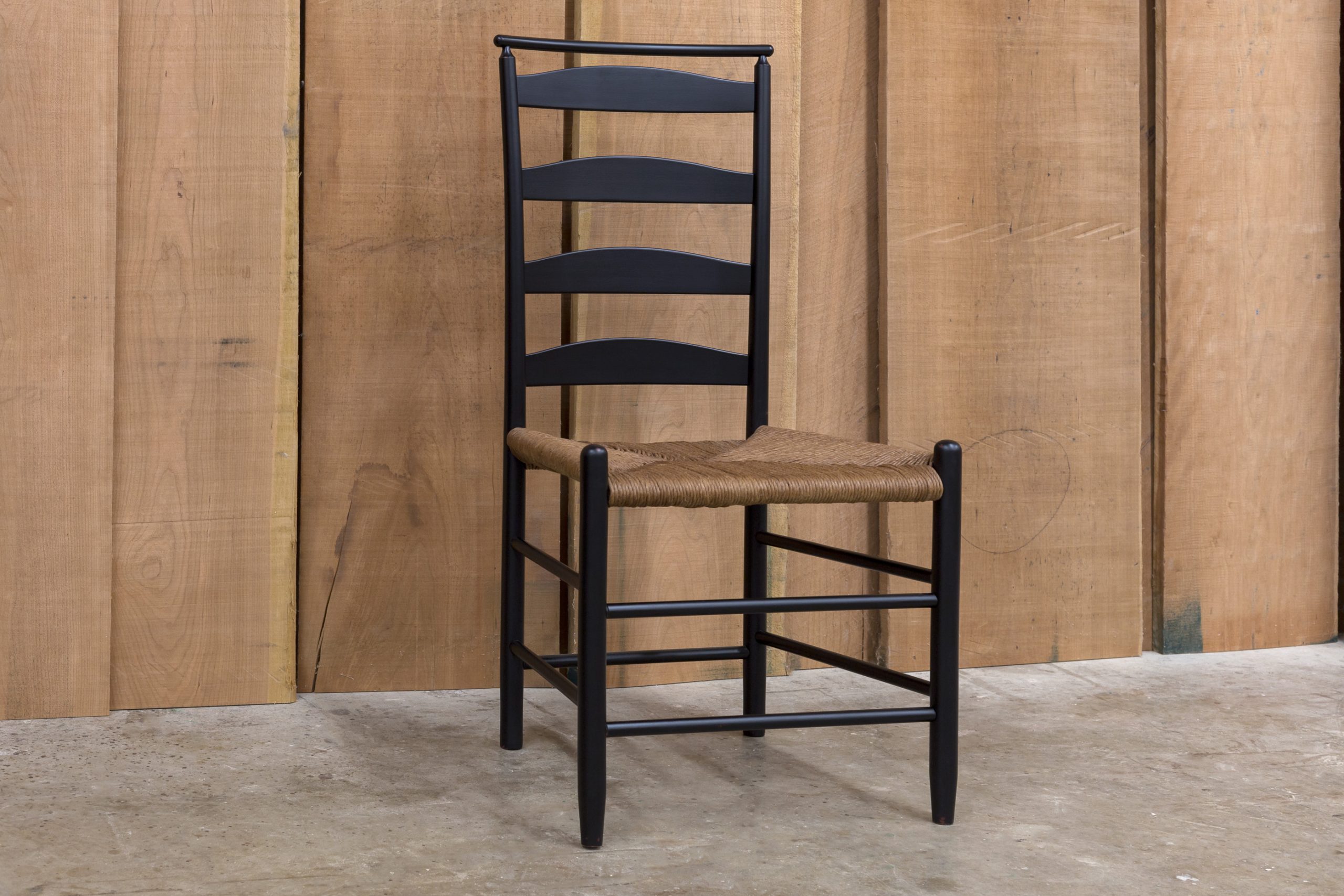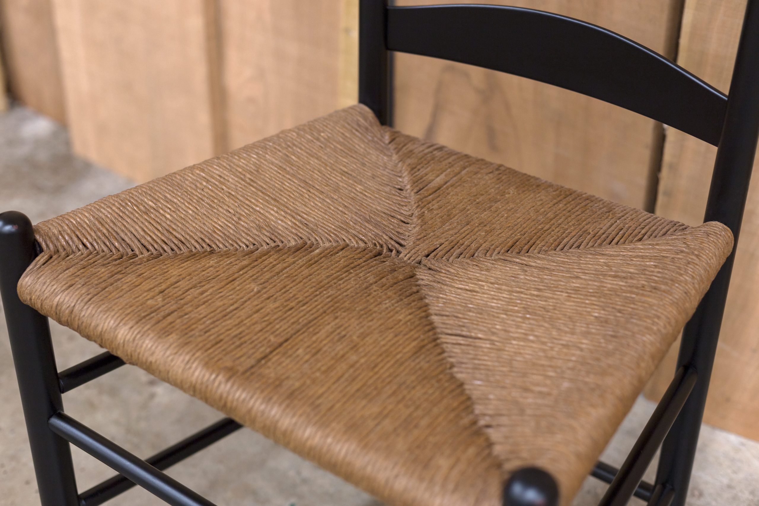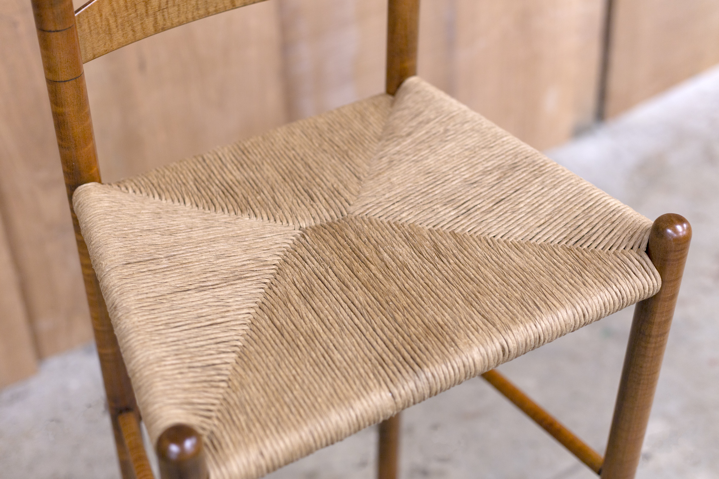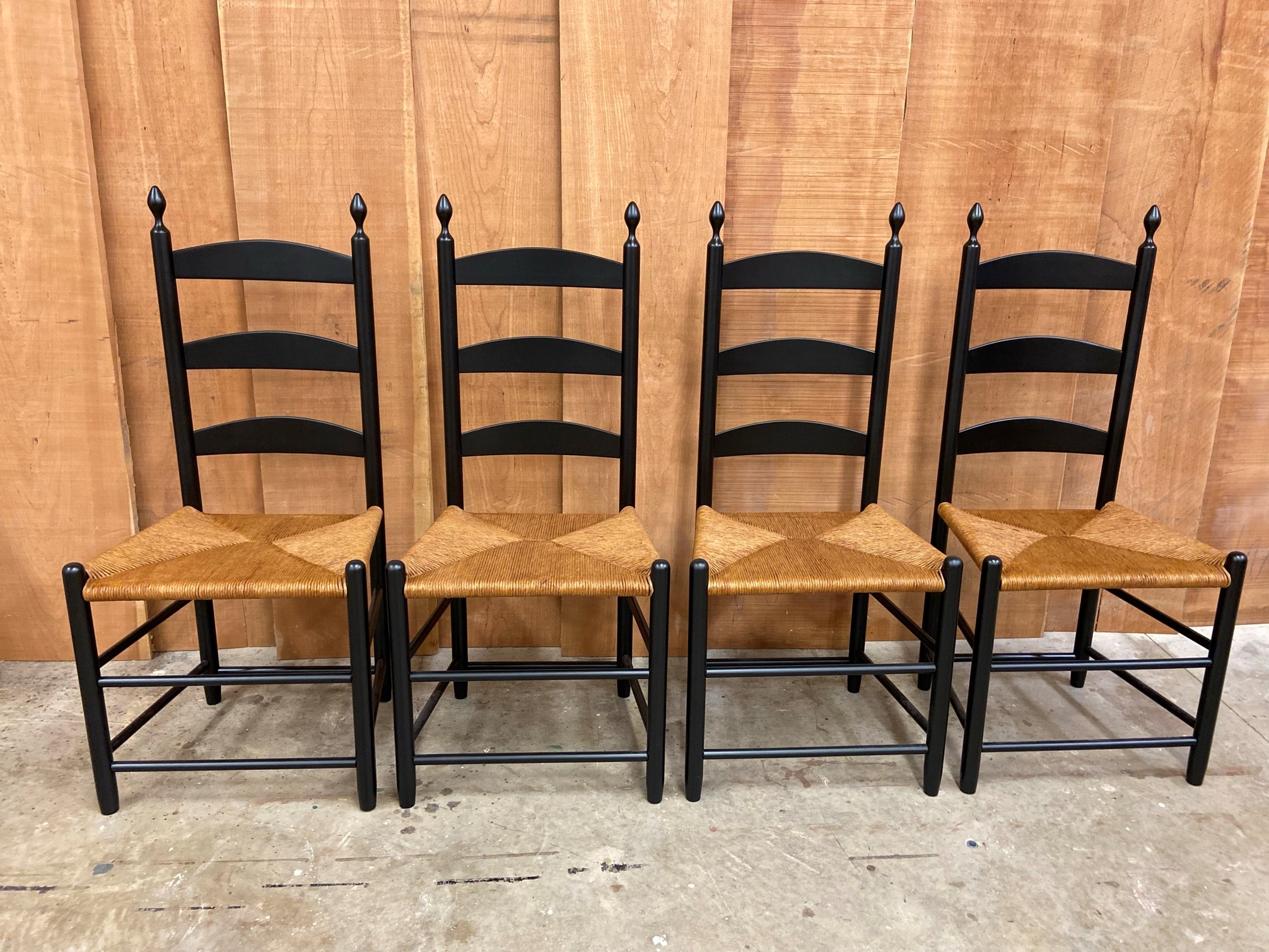 Extension Table built out of Tiger Maple wood in our Cinnamon finish with a set of Shawl Back Side Chairs and Elder’s Arm Chairs