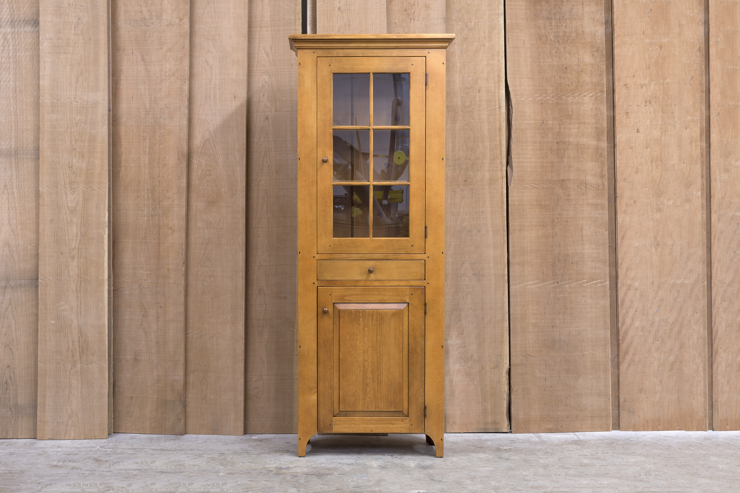 Chimney Cupboard with a glass door built in Sugar Pine wood in our Honey finish
