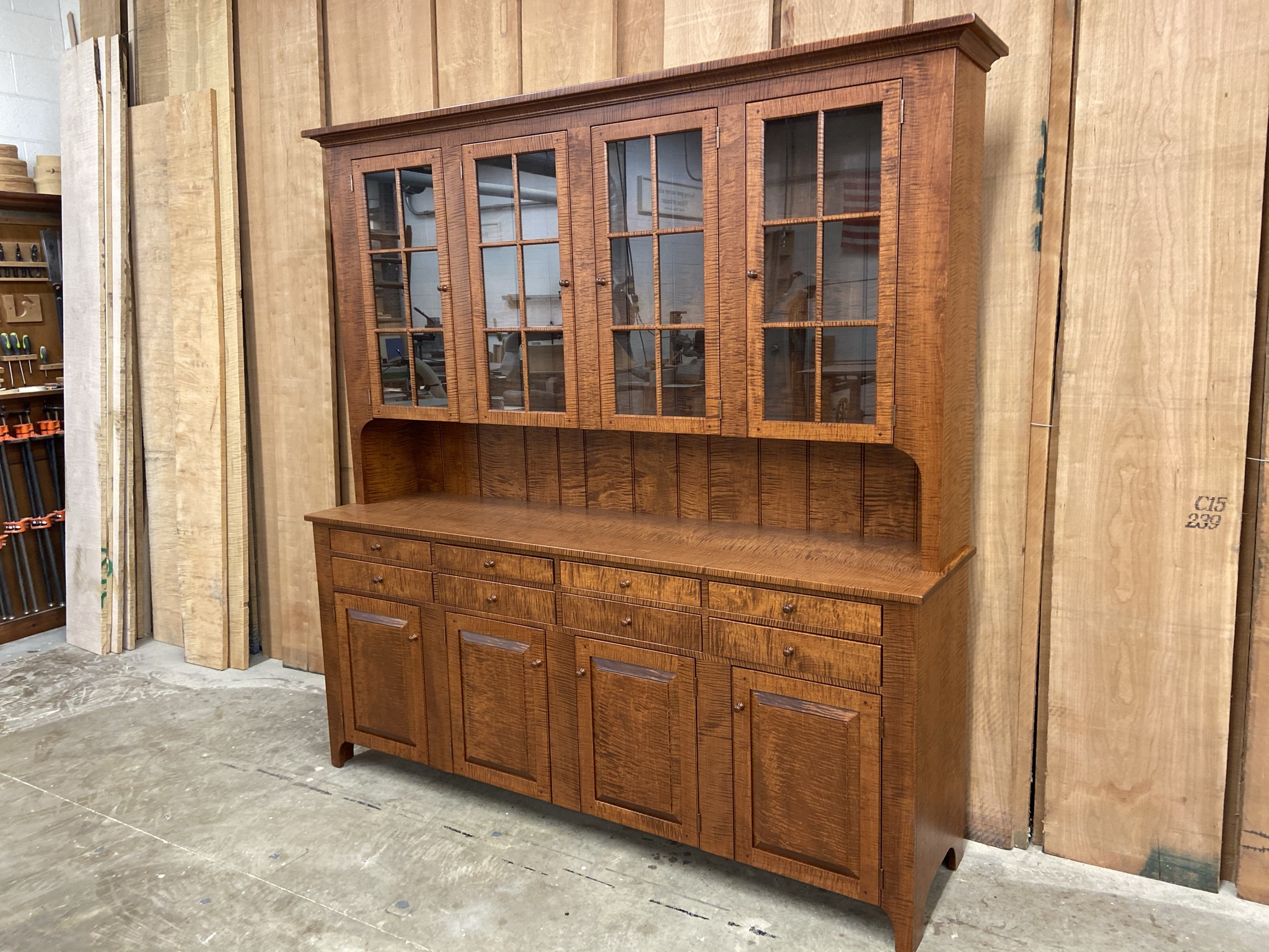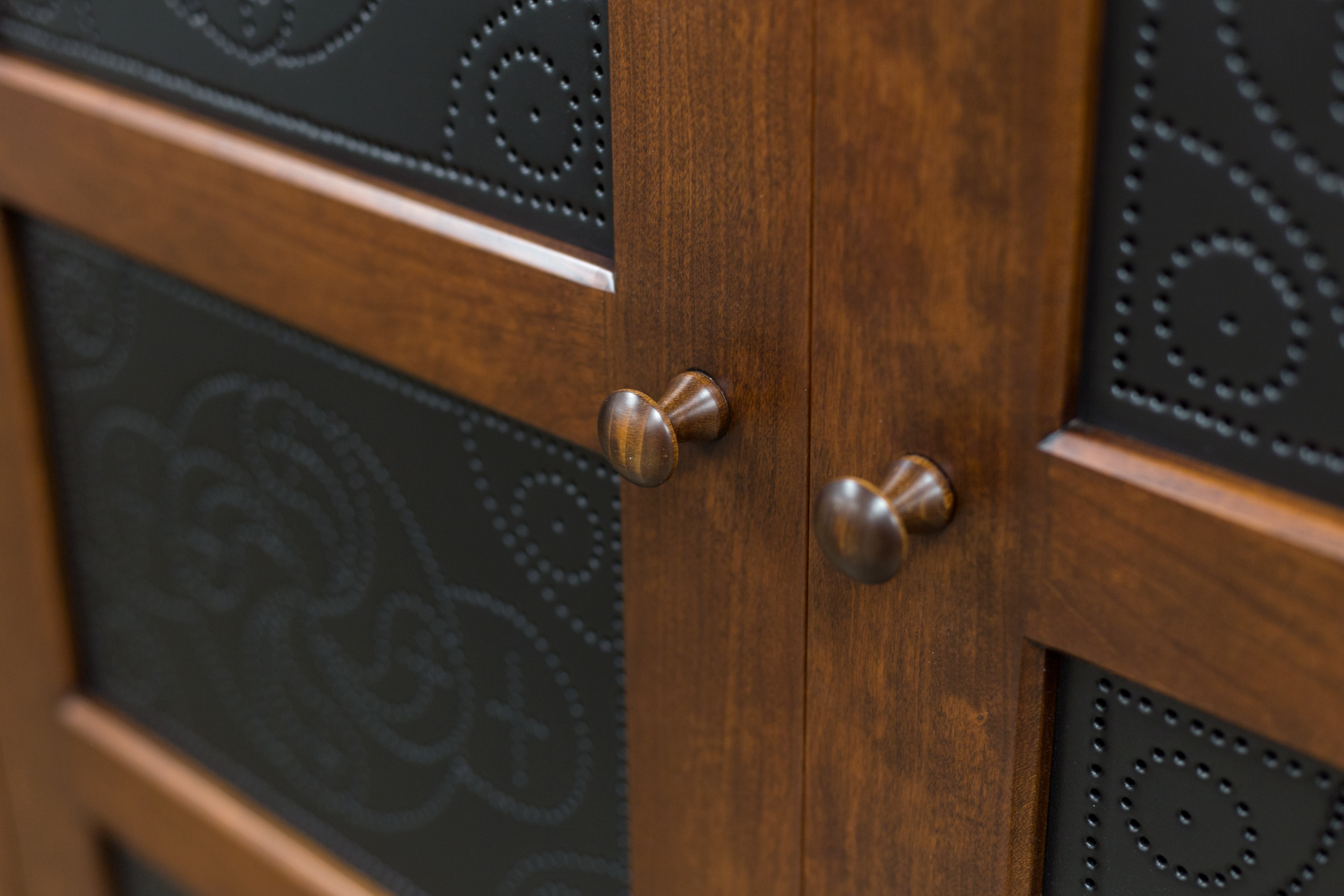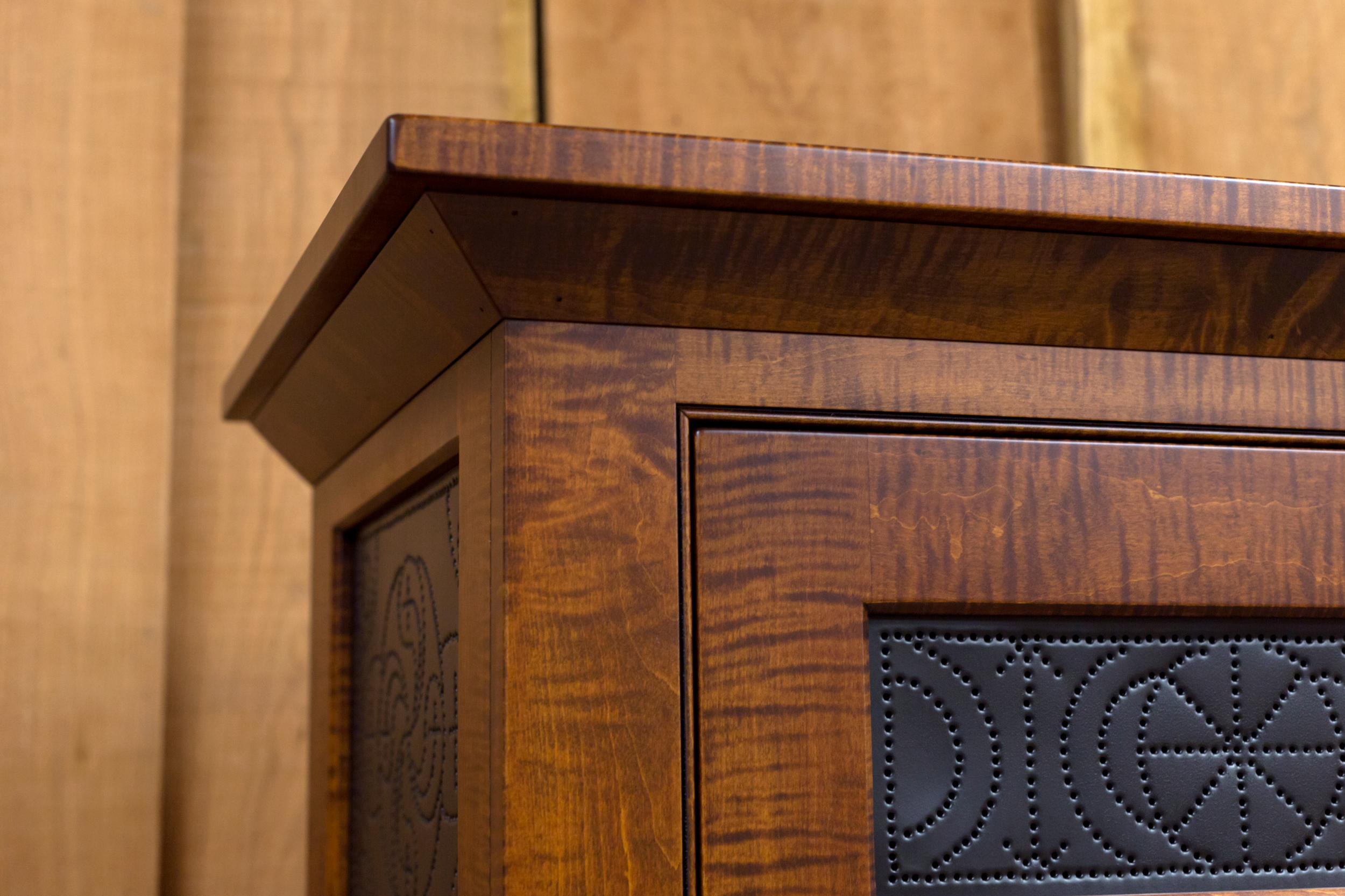 Custom Pie Safe built of Tiger Maple wood in our Cinnamon finish