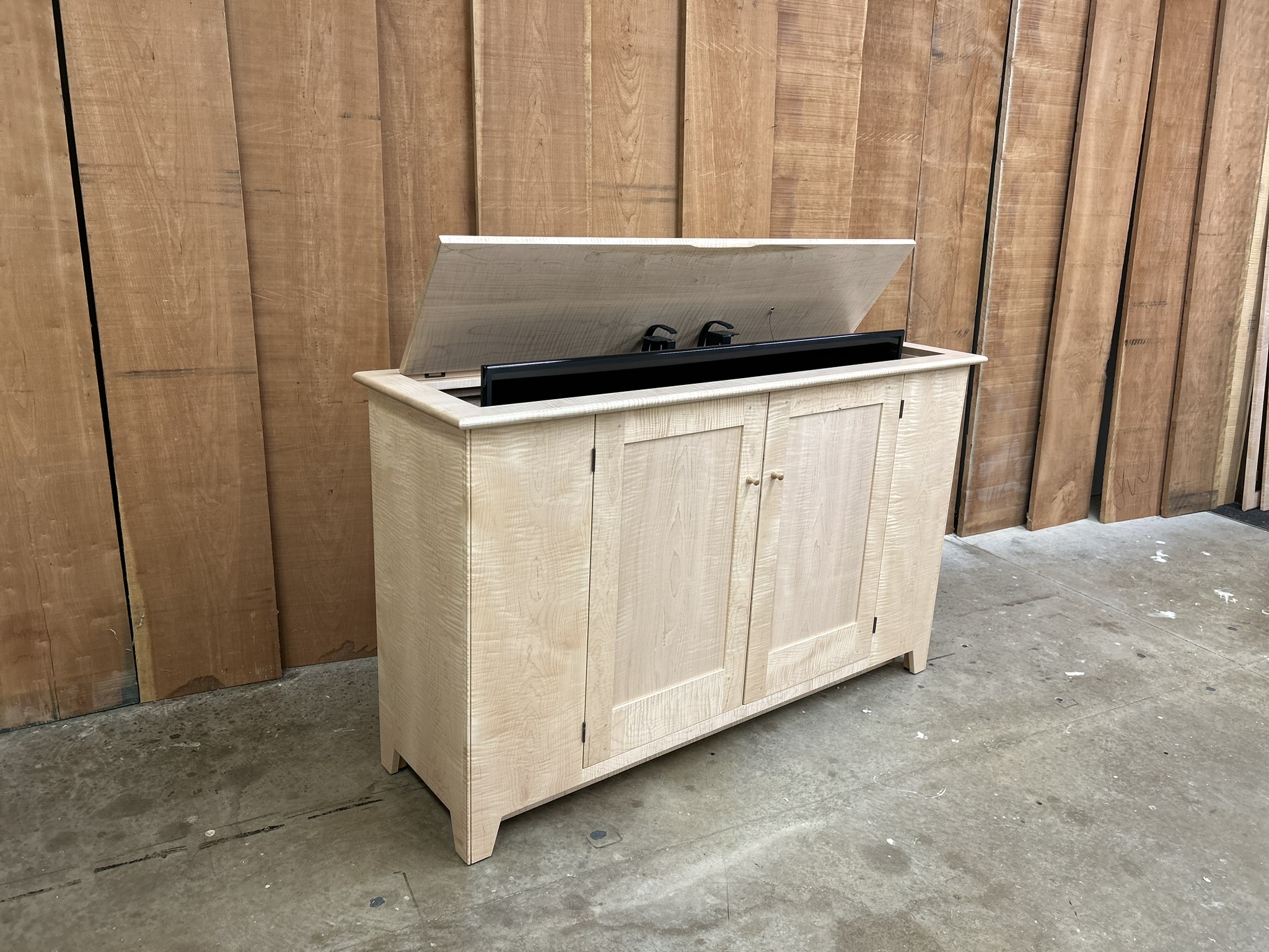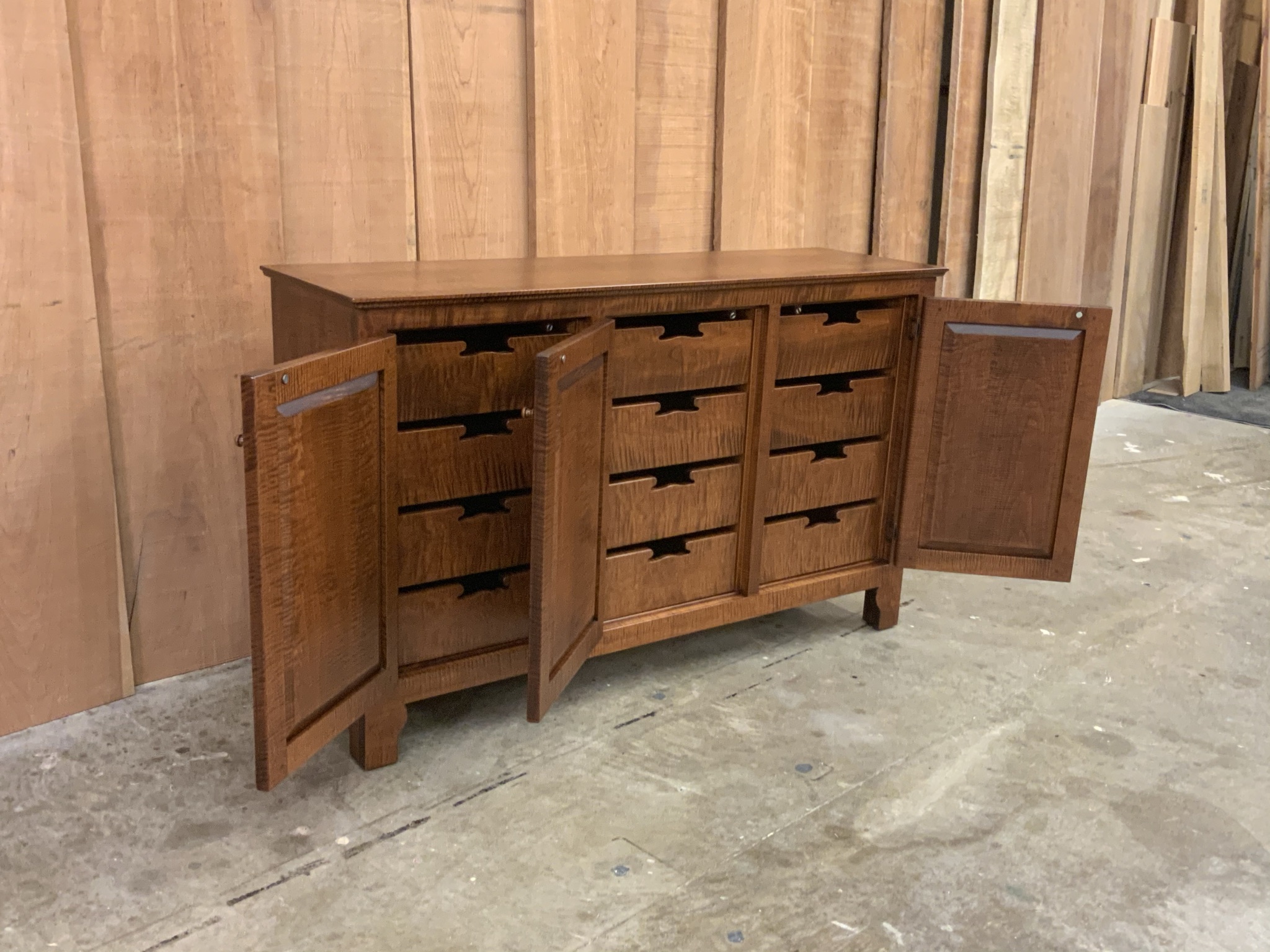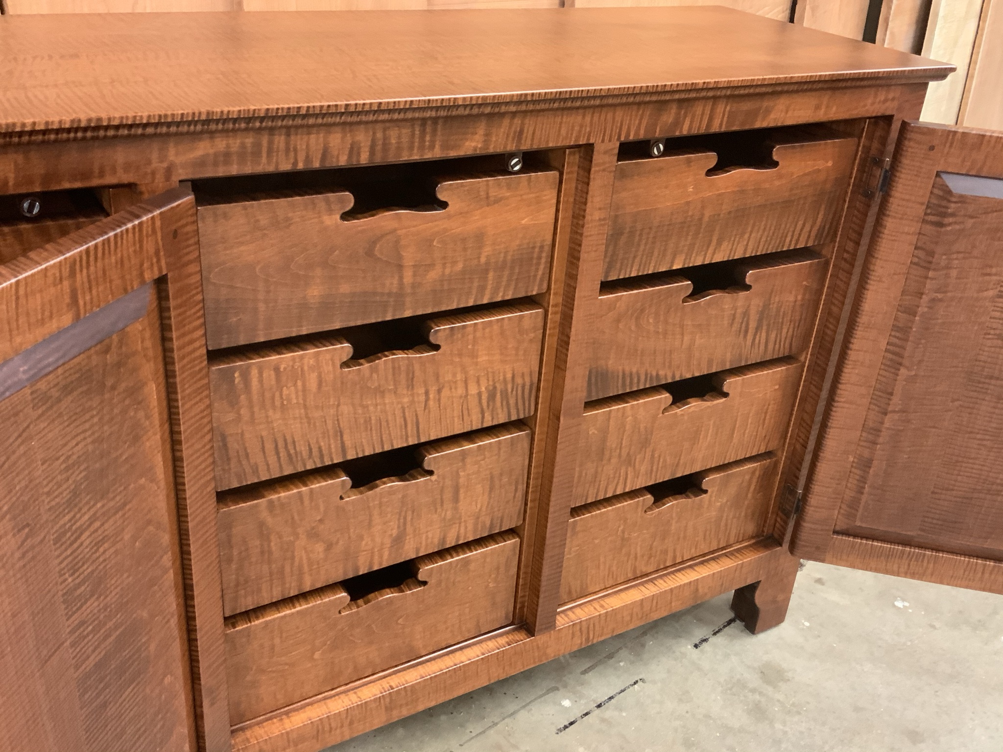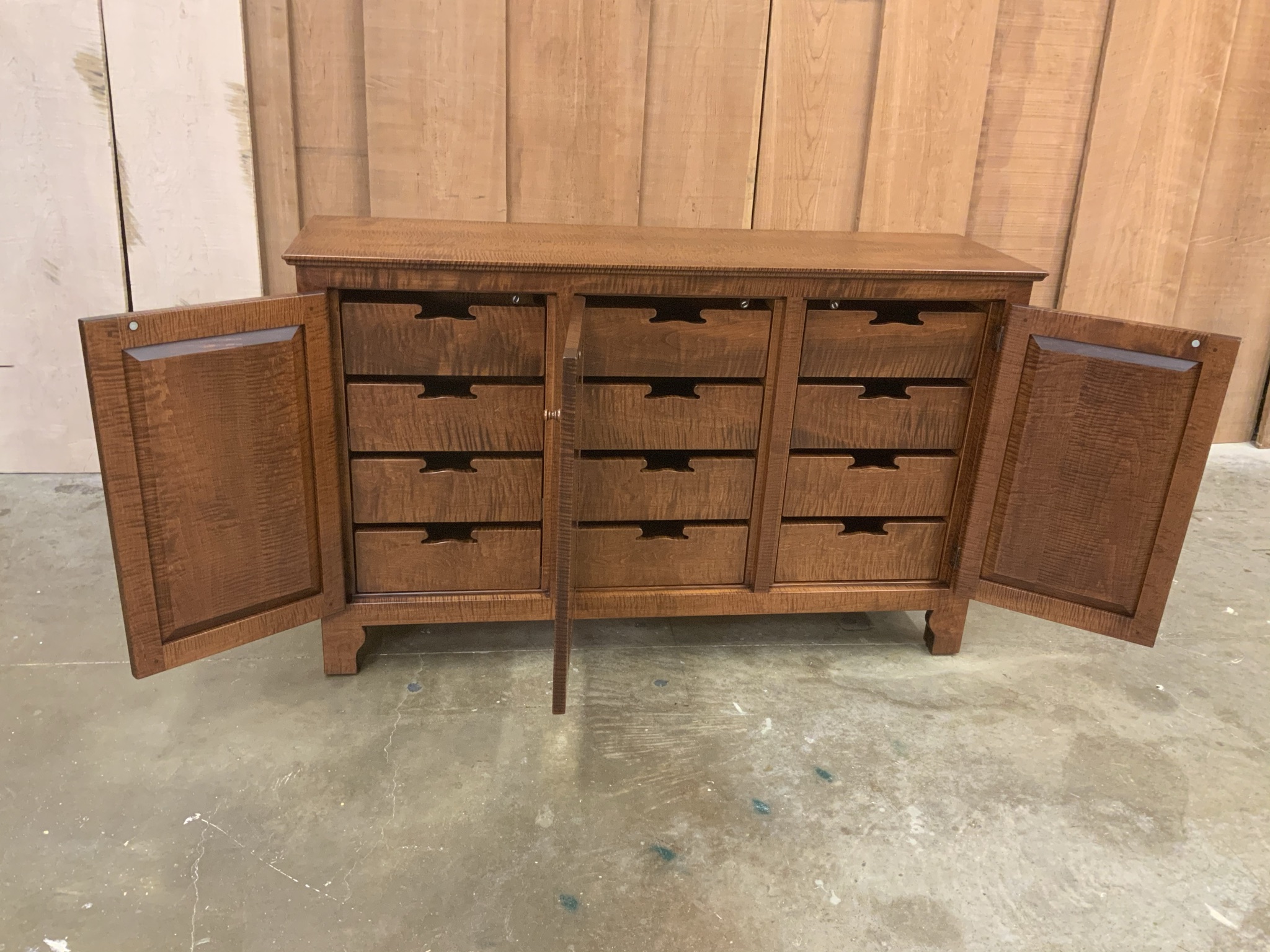 Custom Storage cabinet built of Tiger Maple in our Cinnamon finish