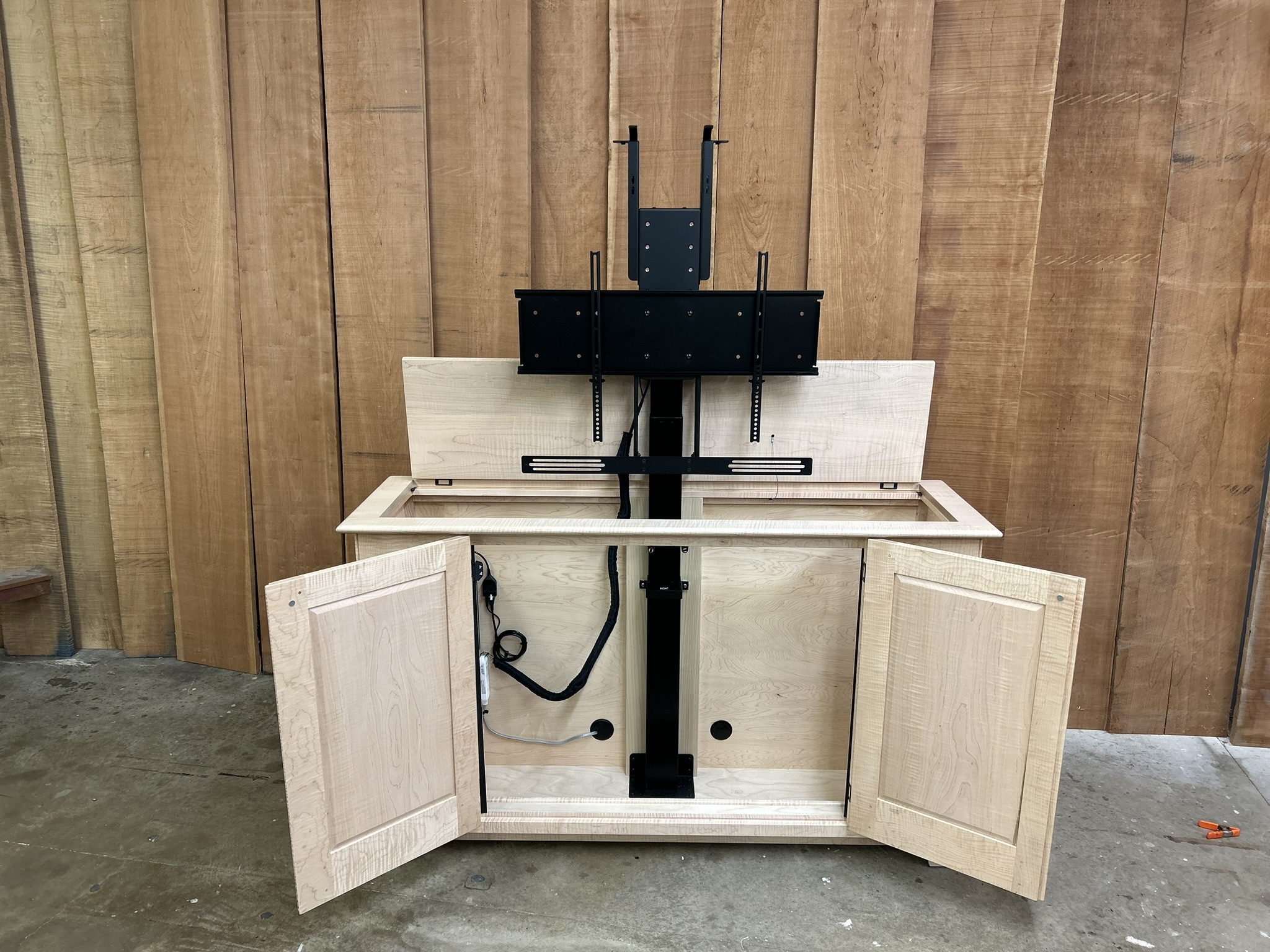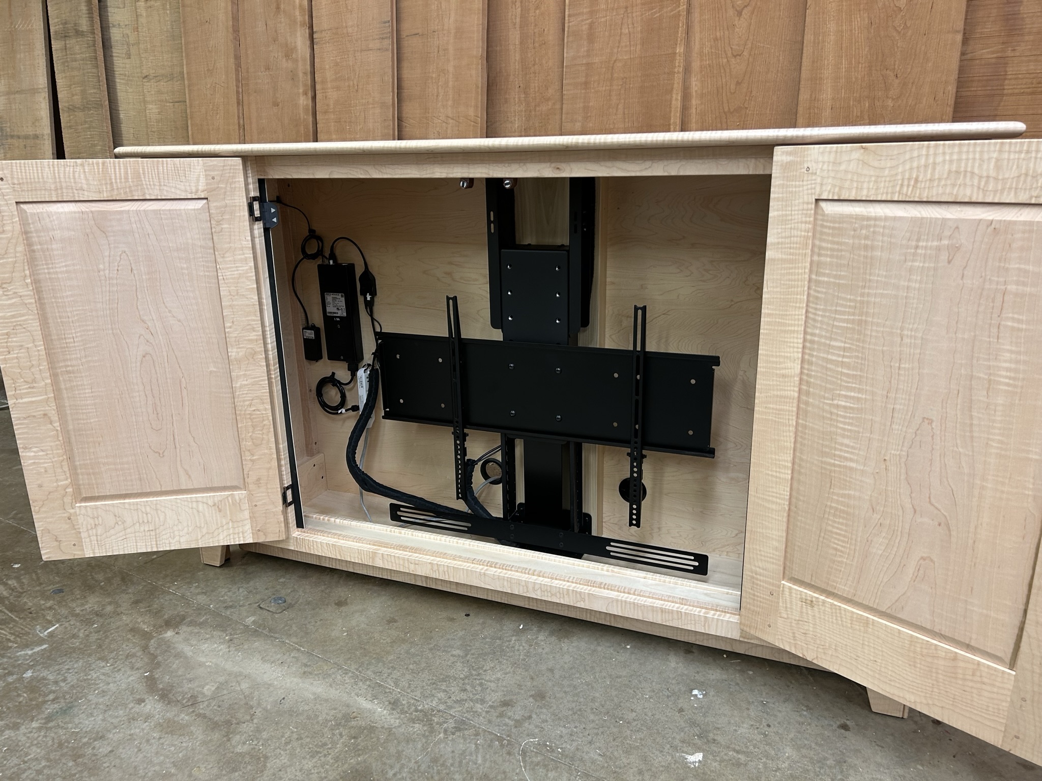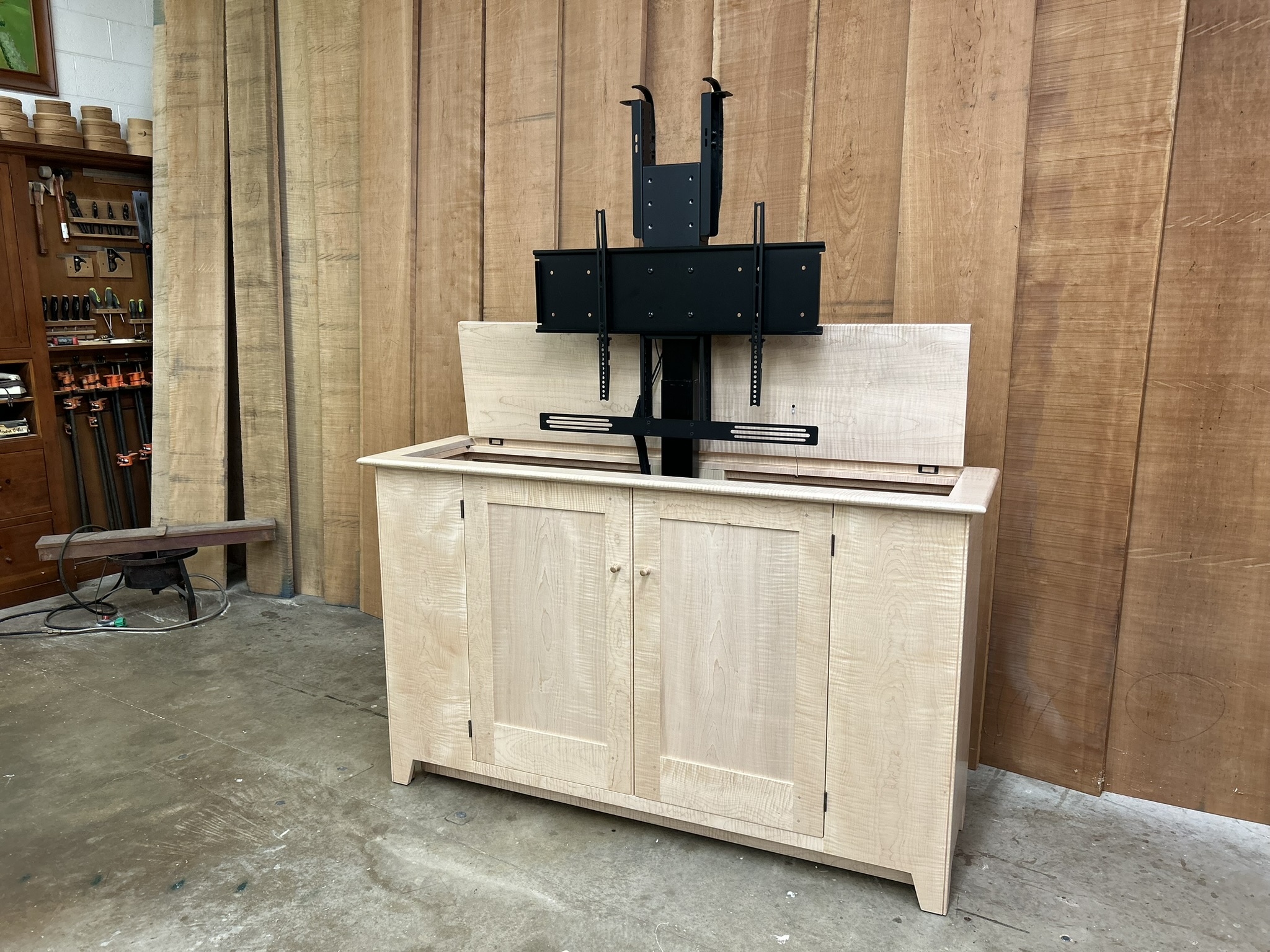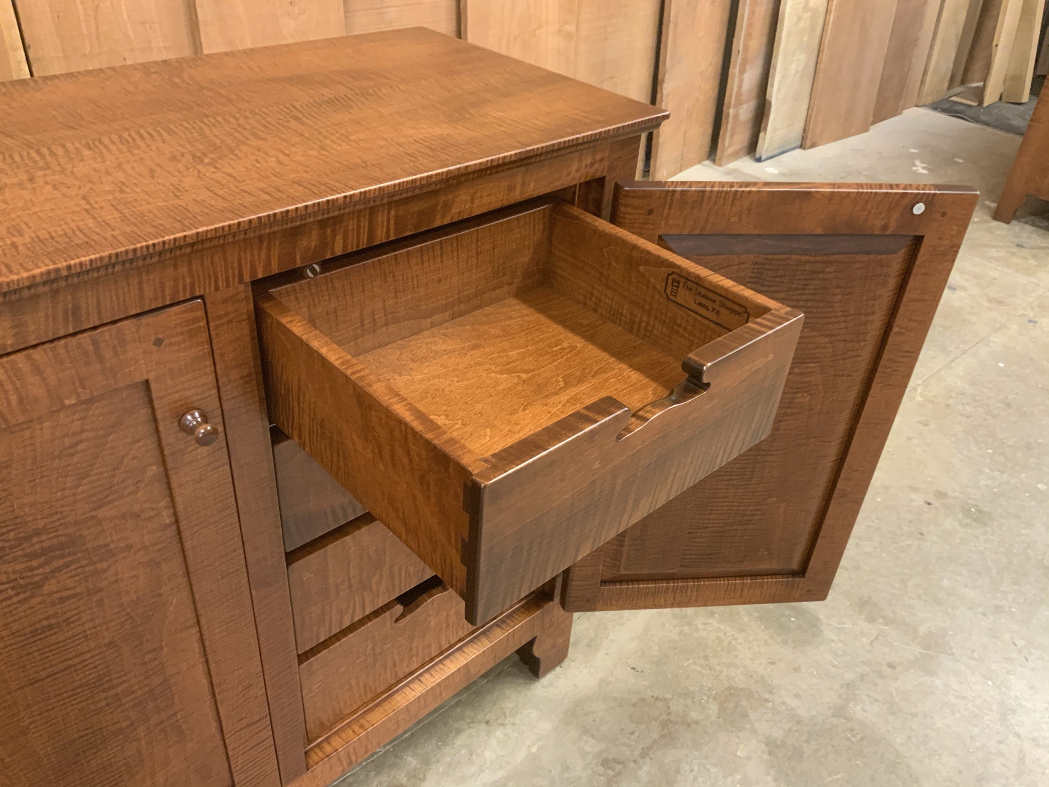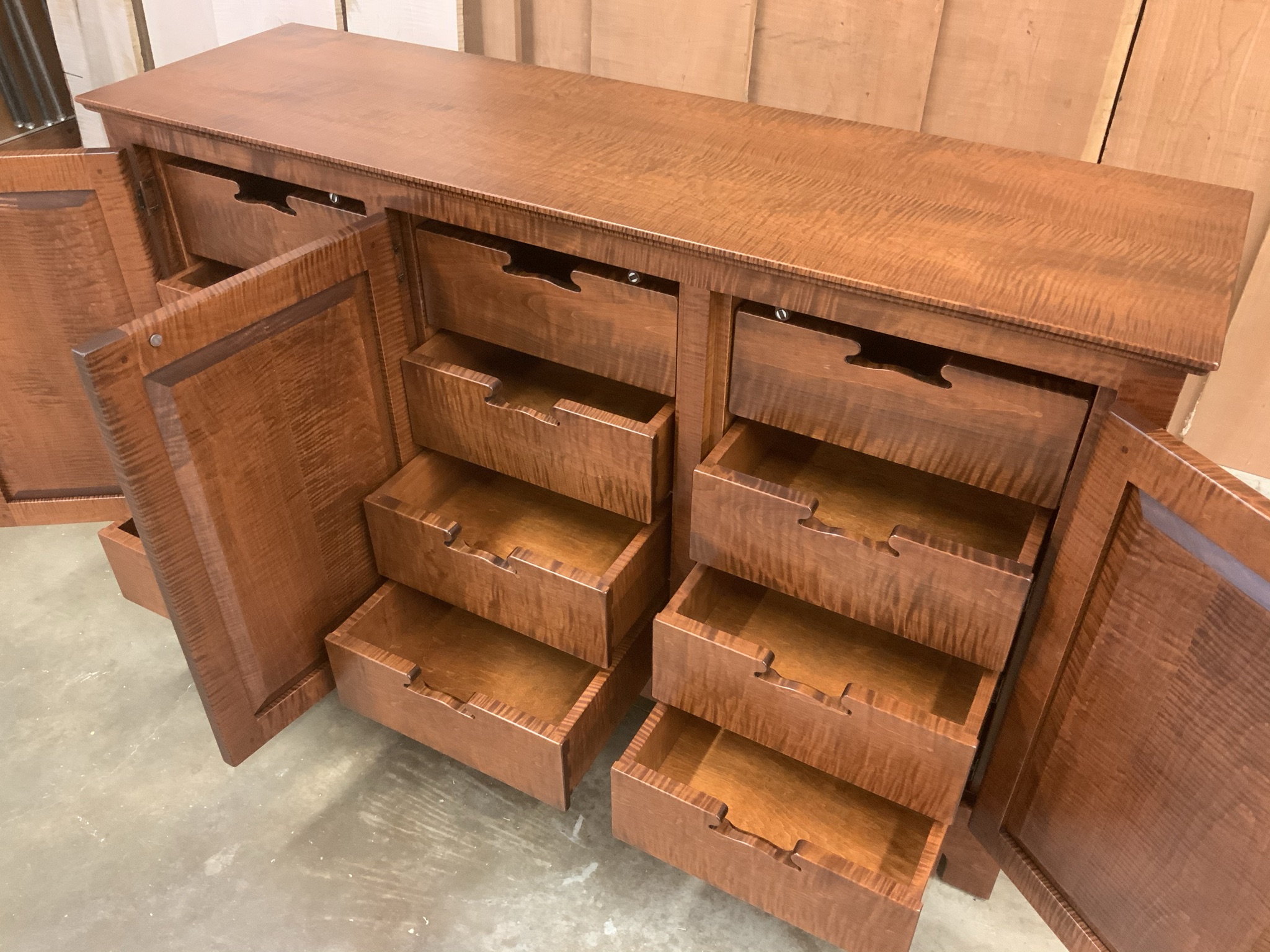 Custom Storage cabinet built of Tiger Maple in our Cinnamon finish